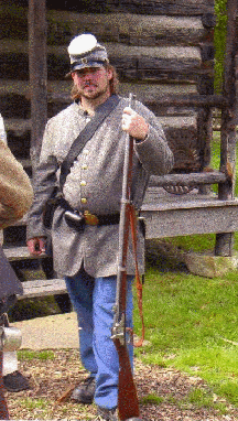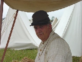 From these loving words, those never having the pleasure, of meeting Wade Strain, can feel the warmth and diversity, of his character. I was fortunate, to reenact with Pvt. Strain, even if the period, of time, was short, but whether, on the field or, in camp, he was a pleasure. A memory I have, which is reinforced at each happening, in which I participate, is when Pvt. Strain fired his 'rifled musket' immediately following the report, he could be heard, to utter a chuckle! In memory, of Pvt. Wade Strain, during an event, upon firing our muskets, we "chuckle," in honour and memory, of our 'brother!' |