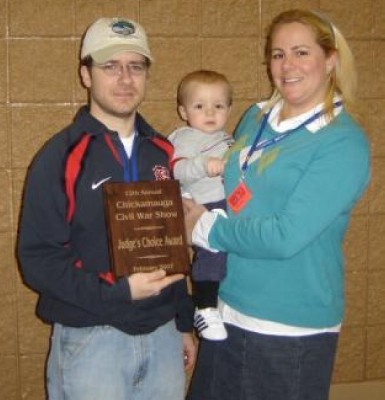 The daguerreotype, to the immediate left, was made, of the Walsh's with John Walsh holding the "Judge's Choice Award" plaque awarded him for his display at the " 11th Annual Chickamauga Civil War Show." |